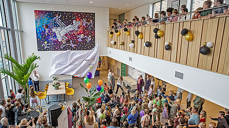 Nienke: “De centrale hal kan gebruikt worden voor kerst, sinterklaas, ouderavonden. Daar kan iedereen elkaar treffen en de samenwerking blijft groeien.”