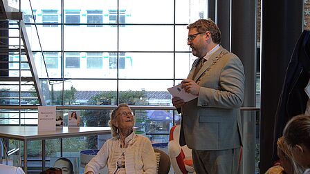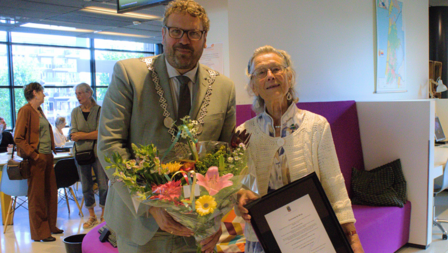 In een ruimte op de eerste etage van de bibliotheek, waar ze zelf aan het werk was, hadden zich familie, vrienden en collega’s verzameld. Onder hen ook haar twee zoons, waarvan een helemaal was overgekomen uit Noorwegen, en twee achterkleinkinderen waren van de partij. Zelf vond ze het allemaal maar een hele toestand. “Vrijwilliger zijn is voor mij zo enorm vanzelfsprekend. Ik krijg er nog meer van terug als dat ik er in stop!”