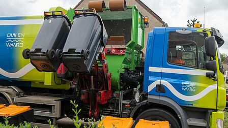 Als de afvalbakken twee aan twee langs de weg staan, kan de inzamelwagen deze tegelijk legen. Wij vragen uw medewerking door met uw buren af te stemmen om de afvalbakken twee aan twee aan te bieden. Heeft u vragen of hulp nodig? Stuur dan een mail naar grondstoffen@dijkenwaard.nl(Verwijst naar een e-mailadres) o.v.v. aanbieden afvalbakken twee aan twee.