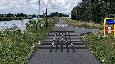Het lijnenpatroon wordt toegepast in drie vormen: een driehoek, cirkel of vierkant. De seinen zijn aangebracht op het wegdek van de Westdijk, tussen de Bolbrug en fietsbrug de Krul.