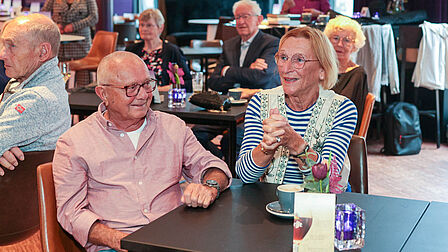 Wij hebben de verhalen van hun liefde opgetekend - hoe hou je het zestig jaar leuk met elkaar? Ook de burgemeester Maarten Poorter vindt dit best een hele prestatie. “Wat ik bij u hoor is het vooral geven en nemen en de ander in zijn waarde laten. Toch ben ik benieuwd wat uw geheim is.” Daarop ging hij de tafels langs waaraan de echtparen zaten, samen met hun jubilerende ‘collega’s’.