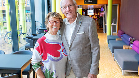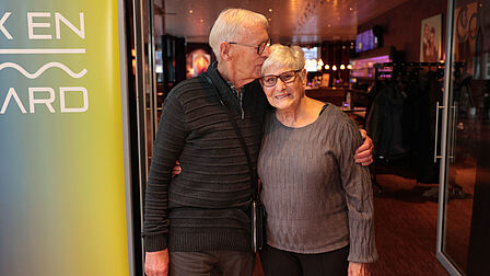 Ook het echtpaar Aalderink- van der Vliet is als echtpaar in Heerhugowaard begonnen maar daarna een flinke tijd weggeweest. Zij vonden hun droomstek in Groningen. “Wij hadden tien honden en dat werd in onze eengezinswoning een beetje druk”, lacht mevrouw (78). “Ik fokte honden van het ras Welsh Terriër. Prachtige beesten maar je moet er gewoon de ruimte voor hebben. Dat vonden we op het Groningse platteland en het aantal honden werd flink uitgebreid.” Meneer (85) vult aan: “Onze dierenarts destijds waarschuwde ons: dat wordt niks daar in het Noorden. Maar we hebben er juist heel fijn gewoond en veel vrienden gemaakt.” Mevrouw sloot zich zelfs aan bij de lokale Plattelandsvrouwen en ook door het bezoeken van hondententoonstellingen kwamen ze veel in contact met andere mensen. “Maar het liefst doen we alles samen hoor. Ook opstaan en naar bed gaan. We staan elke morgen en avond samen te tandenpoetsen”, lacht ze. “Maar qua muzieksmaak verschillen we wel heel erg”, vult meneer aan. Mevrouw vertelt enthousiast: “Ja dat klopt! Ik hou heel erg van Rob de Nijs en sloeg vroeger geen optreden van hem over, ik reisde hem het hele land achterna. Tegenwoordig ga ik nog steeds graag naar concerten van Di-Rect, Jett Rebel en Racoon.” Daarvoor moet je meneer niet bellen: “Ik heb een seizoenskaart voor AZ, daar ga ik samen met mijn schoonzoon naartoe. Dat is mij spannend genoeg!”