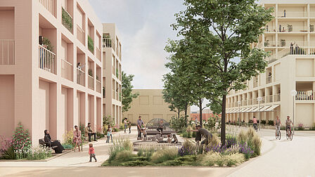 De ambitie voor De Frans is een brede wandel- en fietsroute: de Levensader. Een slingerend pad door de wijk, met ruimte voor bomen, struiken, bloemen, bankjes en speelplekken. Misschien komen er ook kleine winkels of werkplekken langs het pad.